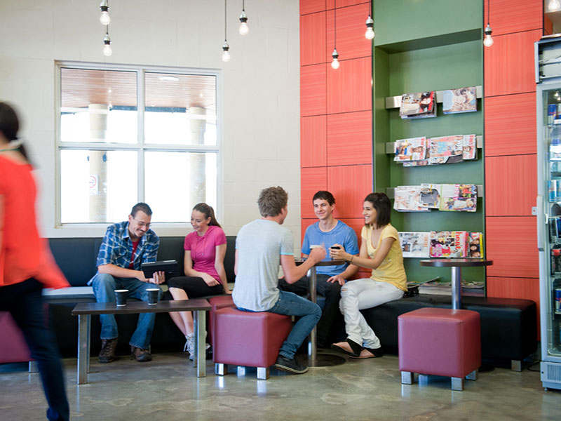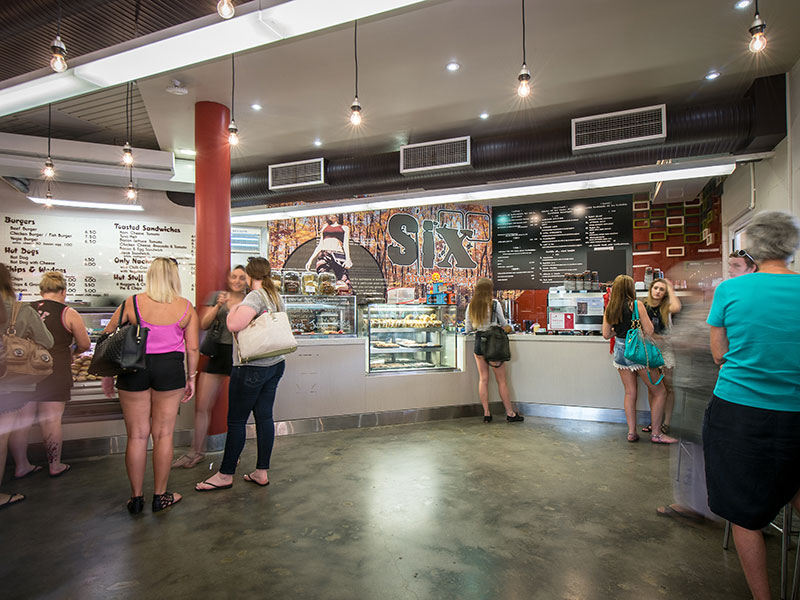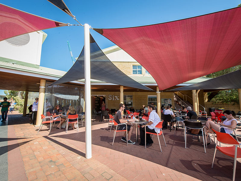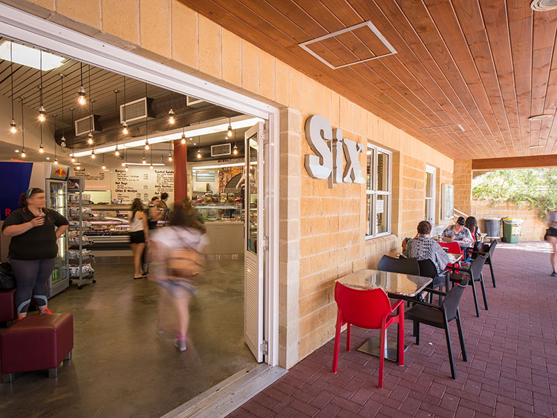 Six Street cafe, or 'Six', is popular with students and staff, giving you the option to eat in, enjoy the al fresco area or take away. On offer is a wide range of sandwiches, rolls and baguettes, as well as pies, sausage rolls, biscuits and the famous mega-muffins. Also available is a full selection of coffees and teas, soft drinks, juices and milk drinks.