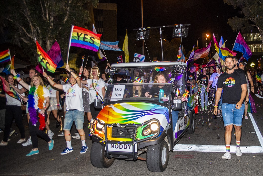 ECU has developed a range of Pride related merchandise for staff and students to display, wear with pride and show their support for our LGBTIQ communities. You may even see our Pride decorated electric vehicle or utility vehicle around the streets of Perth and on campus.