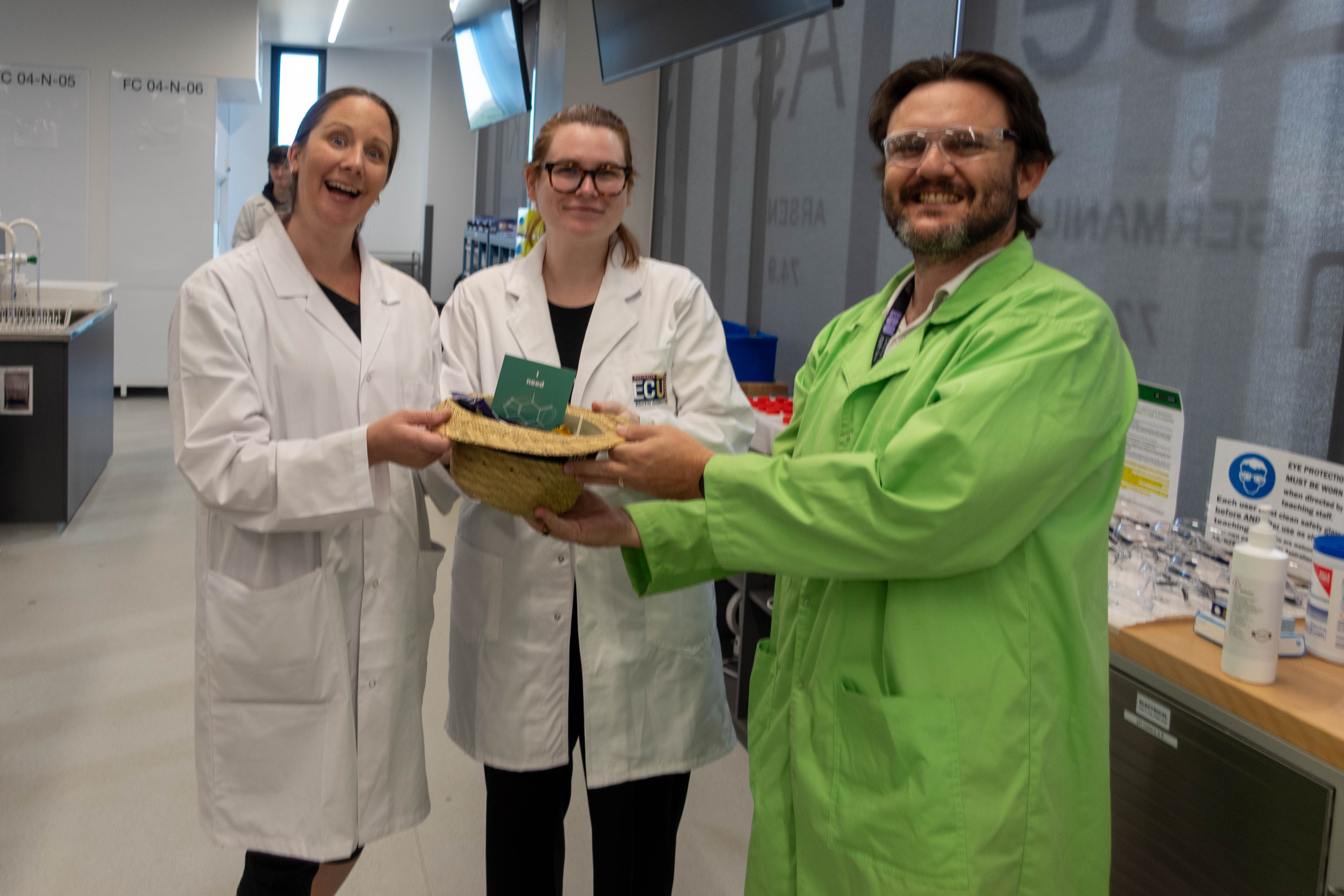 Last semester, students in the Organic Chemistry unit SCC2211 competed in the inaugural Chemistry Synthesis Competition. The students drew on the skills and techniques that they had learnt during the laboratory course this semester to compete for the honour of being named the best synthetic students at ECU! Teams were assessed on their cohesion and collaboration, their independence (i.e., not needing input from demonstrators), their proficient usage of chemistry glassware and apparatus, and the quality of their final product, meaning the amount produced and its purity.