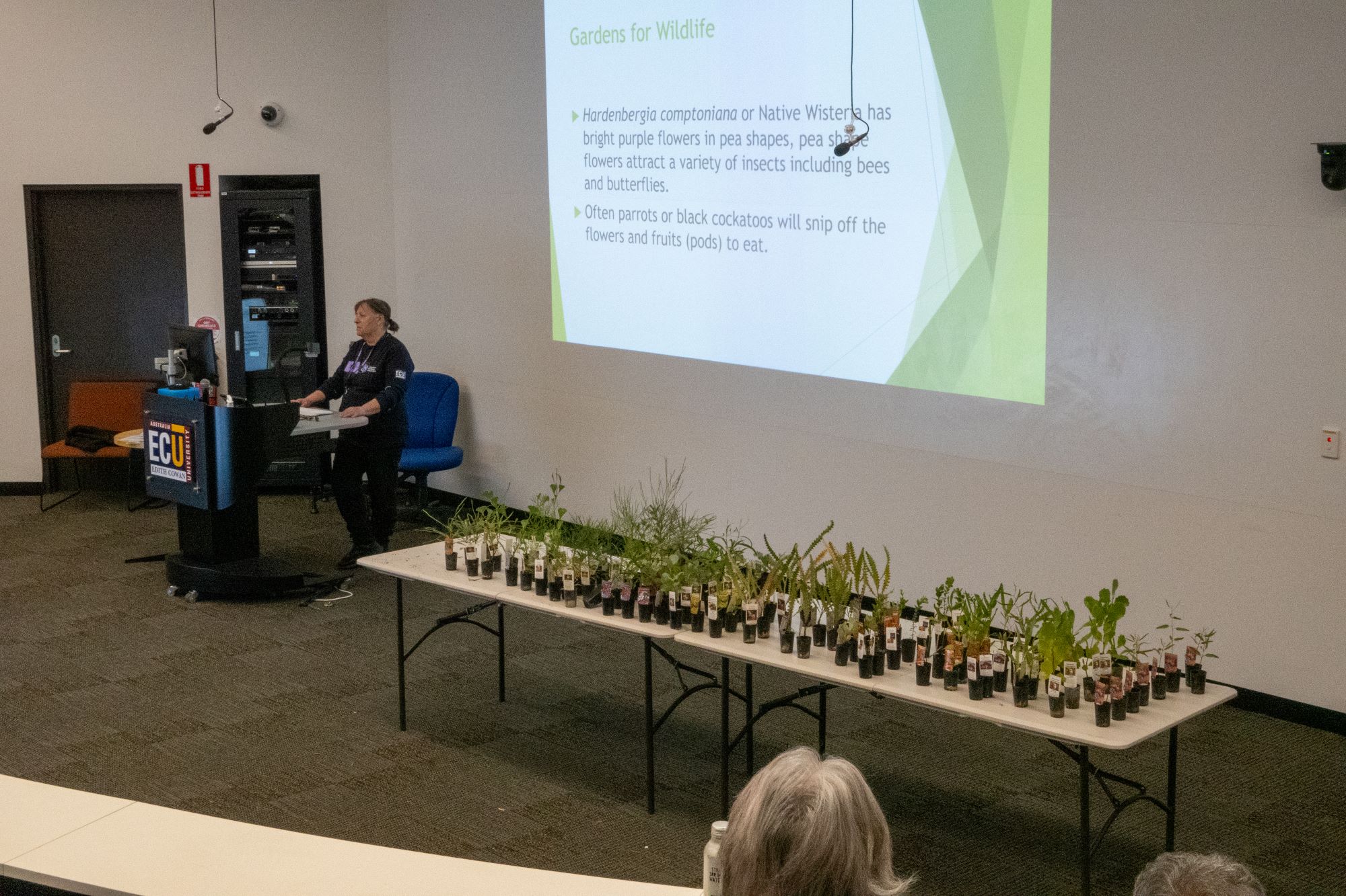 Finally, on 31st August, we concluded the series at our Bunbury campus with a perfect day for exploring. Local scientist Cherie Kemp gave an engaging lecture on the mammals and birds of the southwest, and attendees were then treated to either a short or long interpretive walk through the campus gardens and local bushland. Student Ambassadors Scott Bazely and Tracy Zemunik led the shorter tour, while Cherie took the longer walk, culminating in a visit to the fenced endangered flora garden, alongside SW Laboratory Technician Jane Griffith. "I enjoyed the event and learning about native plants and fauna. I have since gone and bought more native plants and planted them into my garden," said one attendee. Of course, everyone went home with at least one native plant, ready to attract wildlife to their own backyard.
